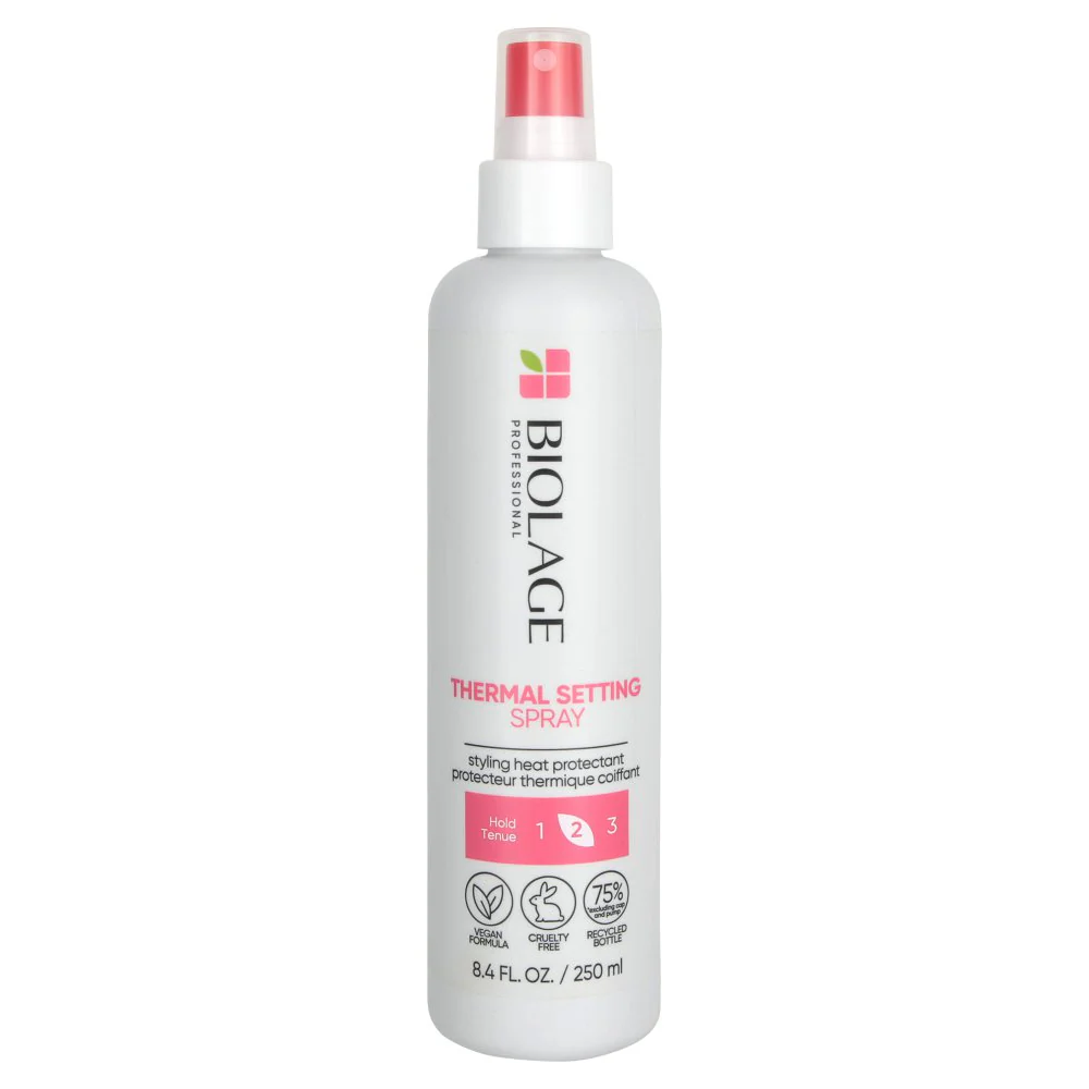 Ce spray thermo actif protège contre les effets néfastes de la chaleur des outils chauffants tout en procurant corps et un volume durable aux cheveux.