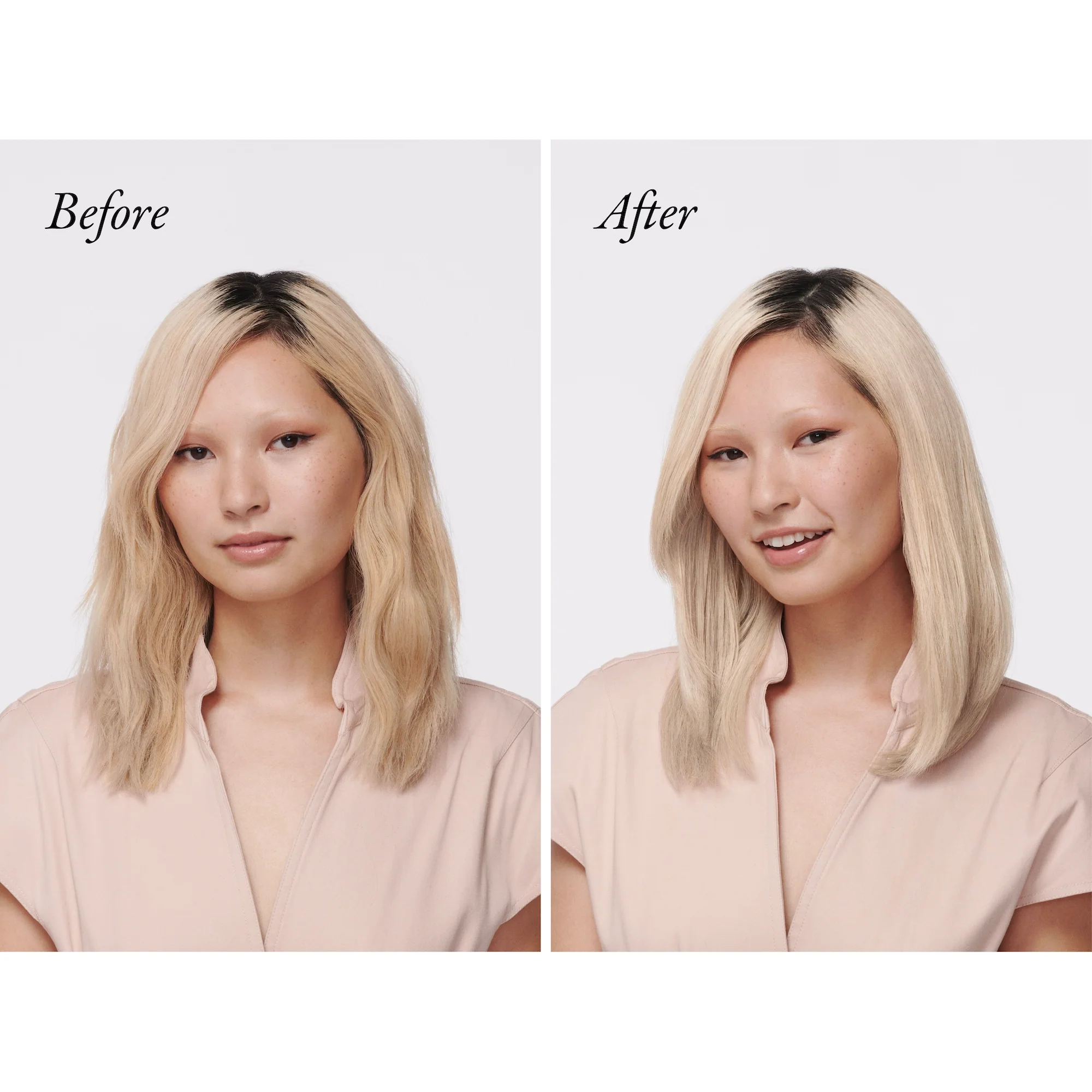Notre soin éclat réparateur soyeux spécialement formulé pour les blondes est une idée lumineuse. Ce concentré surpuissant contient des pigments violets qui rehaussent instantanément la couleur de la chevelure, éliminent les tons cuivrés et éclaircissent les mèches. Composé d’un riche mélange d’huiles et d’extrait de lavande, ce traitement répare et nourrit les cheveux, les laissant hyper doux.